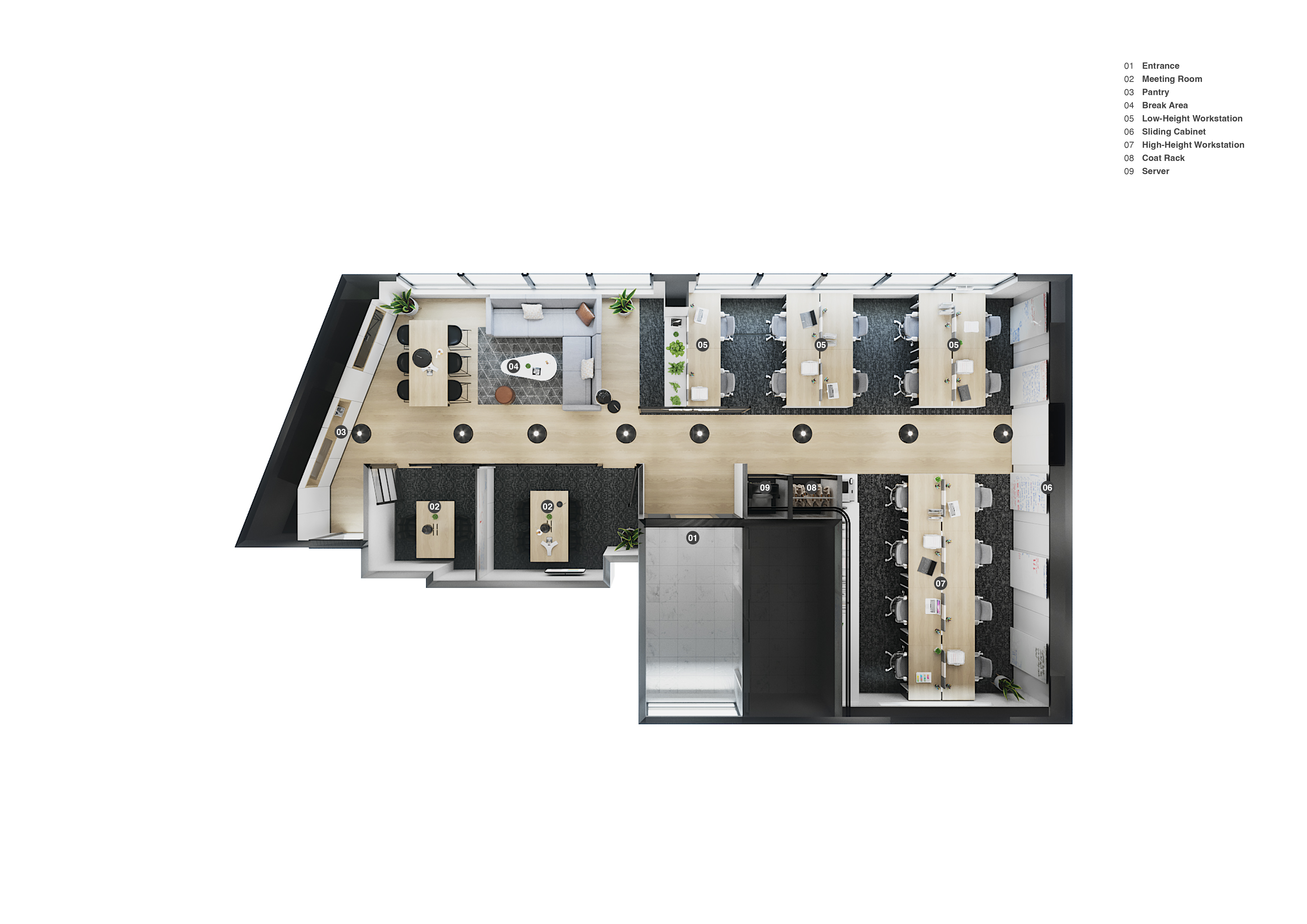 Aurex, a recruitment firm, needed a compact office space of under 100m² that could meet various team needs. The aim was to strike a balance between aesthetics and practicality—delivering a warm, home-like environment with functional meeting spaces for the recruitment process.