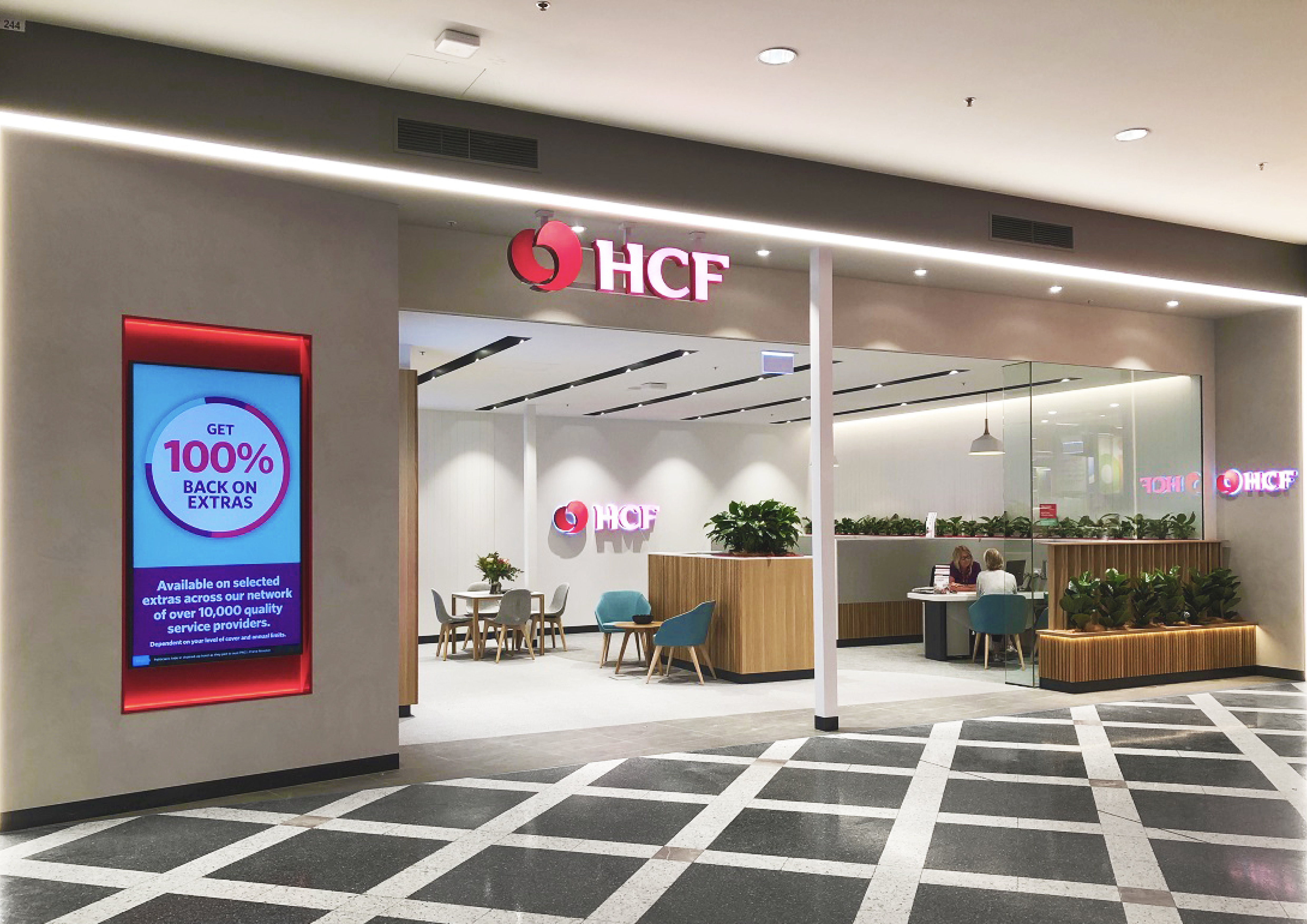 As a well-known Australian health insurance provider, HCF wanted a space that feels warm and approachable while maintaining a clean, professional image. The goal was to design an environment that encourages customers to relax, have open conversations with staff, and make informed health decisions.